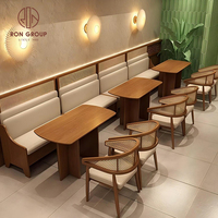 レストラン家具セット茶色の木制ダイニングテーブル織りバック籐椅子とカフェ用レザーソファブース