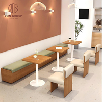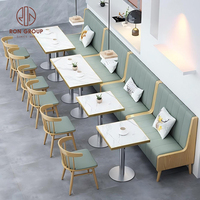 モダンなレストラン家具セット正方形の木制テーブルラウンドベースとグリーンレザーソファウッドチェア付きカフェ用